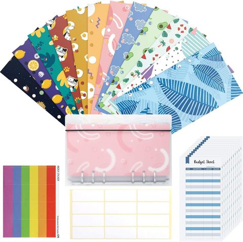 Sobres de plástico reutilizables para sistema de presupuesto, planificación de presupuesto con 12 hojas de presupuesto